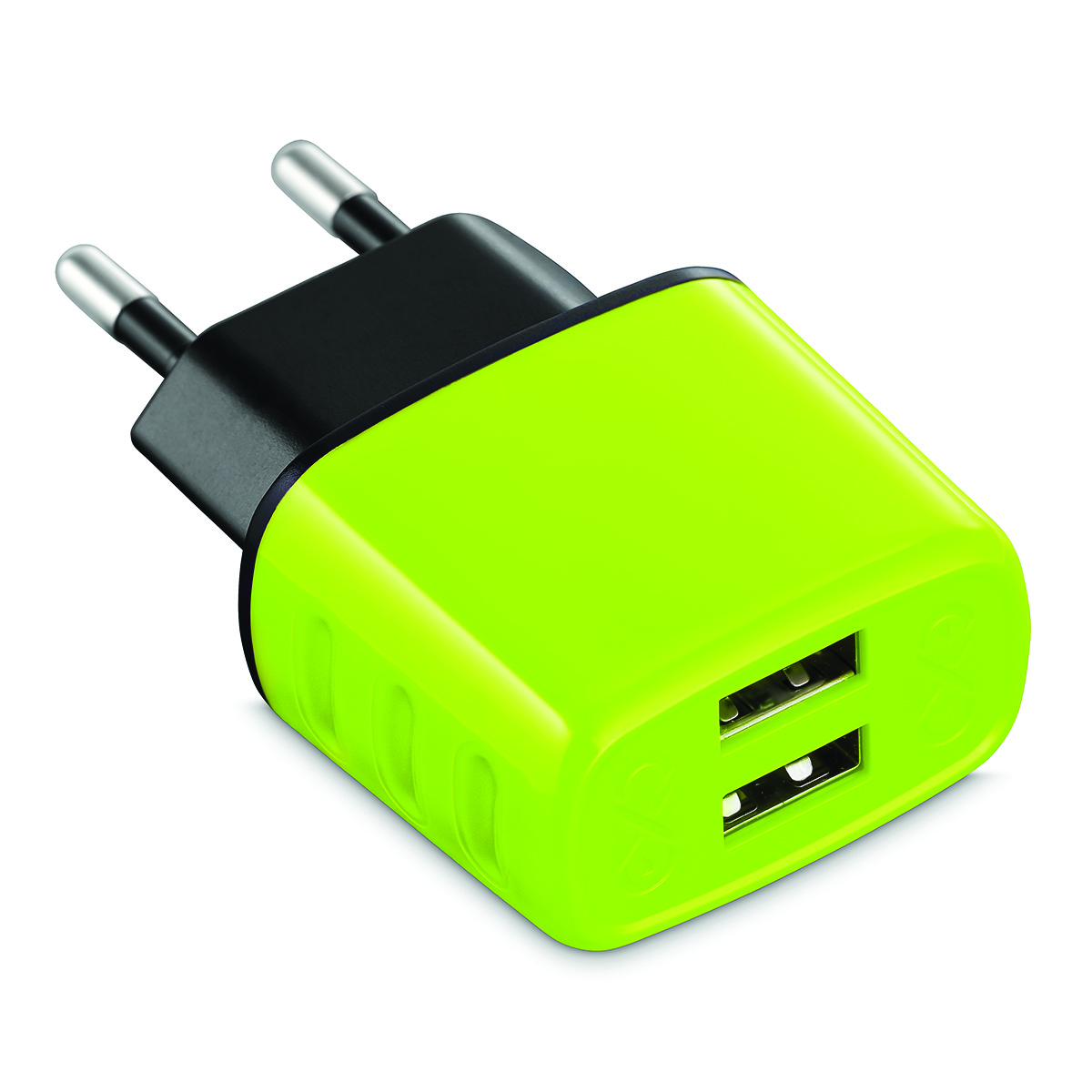 Uniwersalna ładowarka sieciowa EXC Cute, 2xUSB, 2,4A, limonkowa