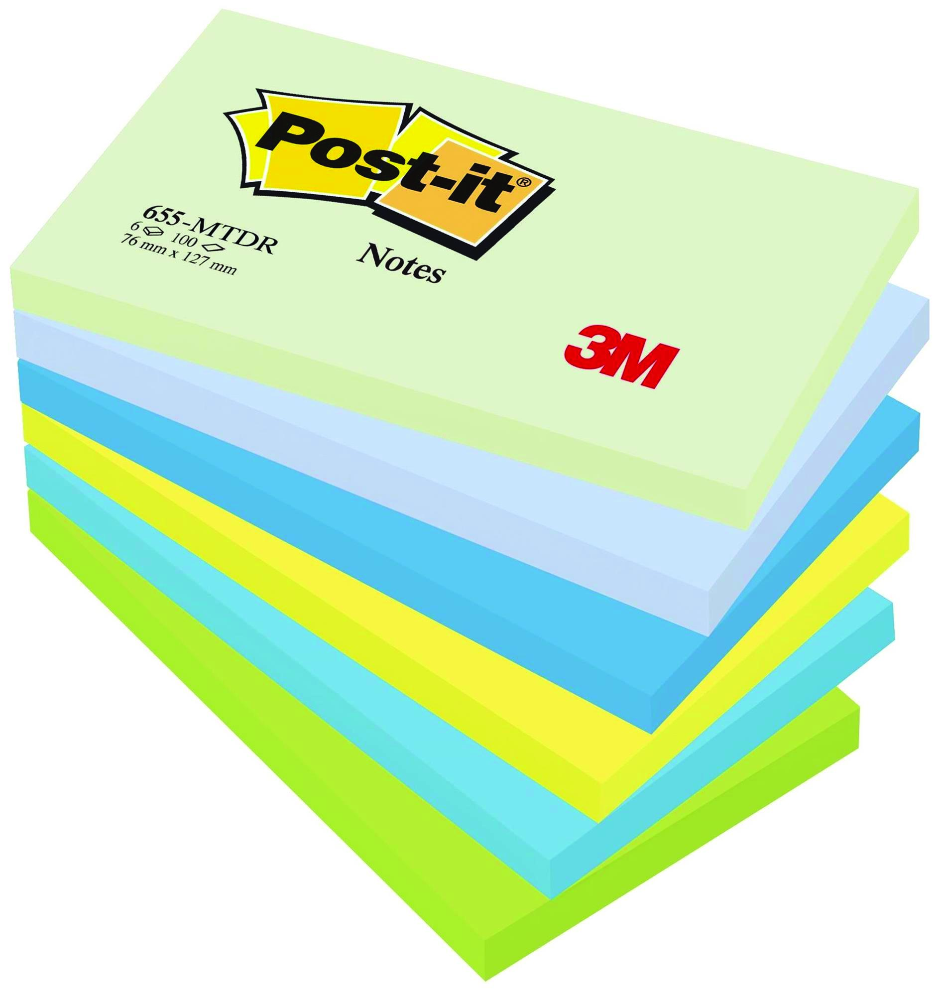 Bloczek samoprzylepny POST-IT® (655-MTDR), 127x76mm, 6x100 kart., paleta marzycielska, Bloczki samoprzylepne, Papier i etykiety