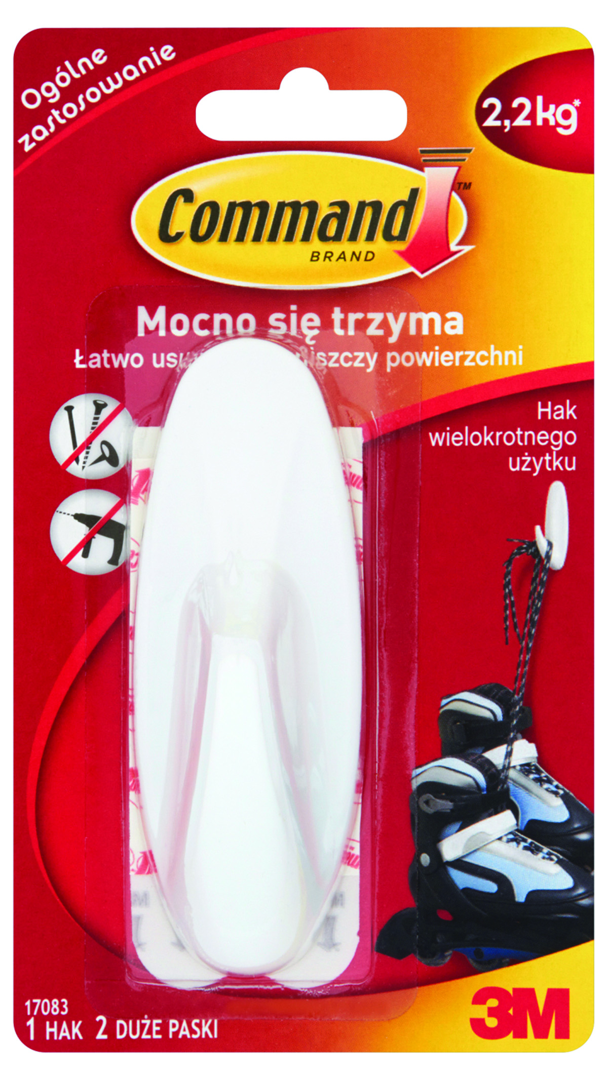 Nazwa produktuHak wielokrotnego użytku COMMAND™ Designer (17083 PL), duży, biały