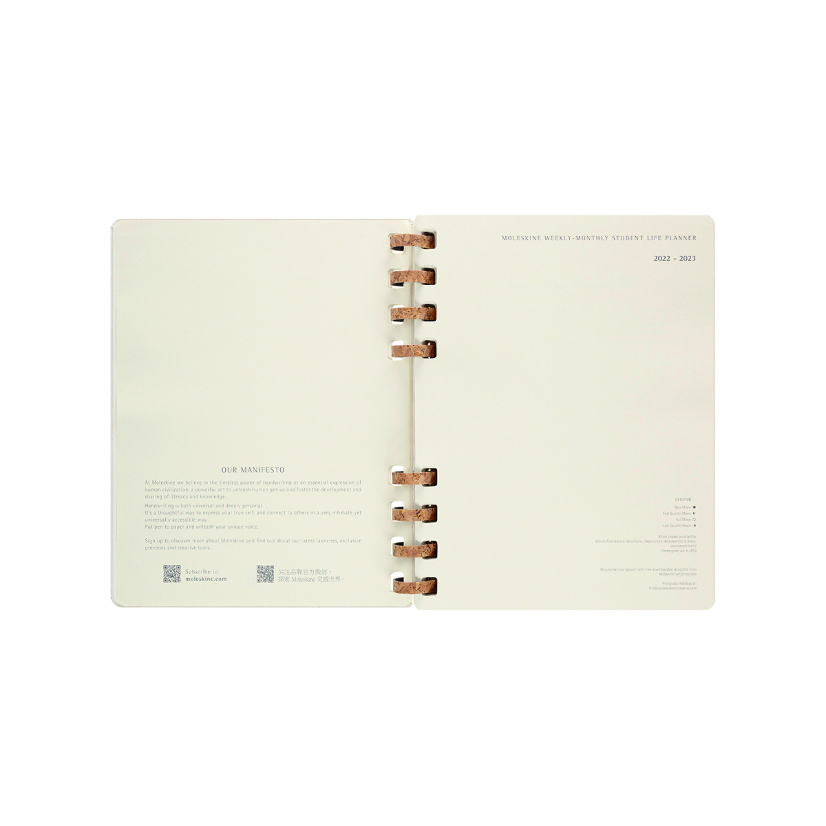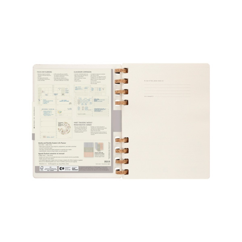 • Oprócz innowacyjnego materiału okładkowego autorstwa Favini i unikalnych treści akademickich, ten planer wyróżnia się również spiralnym grzbietem. Specjalna receptura z mieszanki korkowej zapewnia solidny, elastyczny, ciepły i oryginalny charakter kalendarza studentckiego.