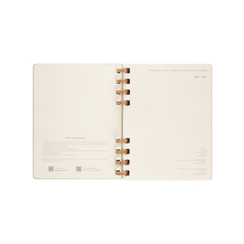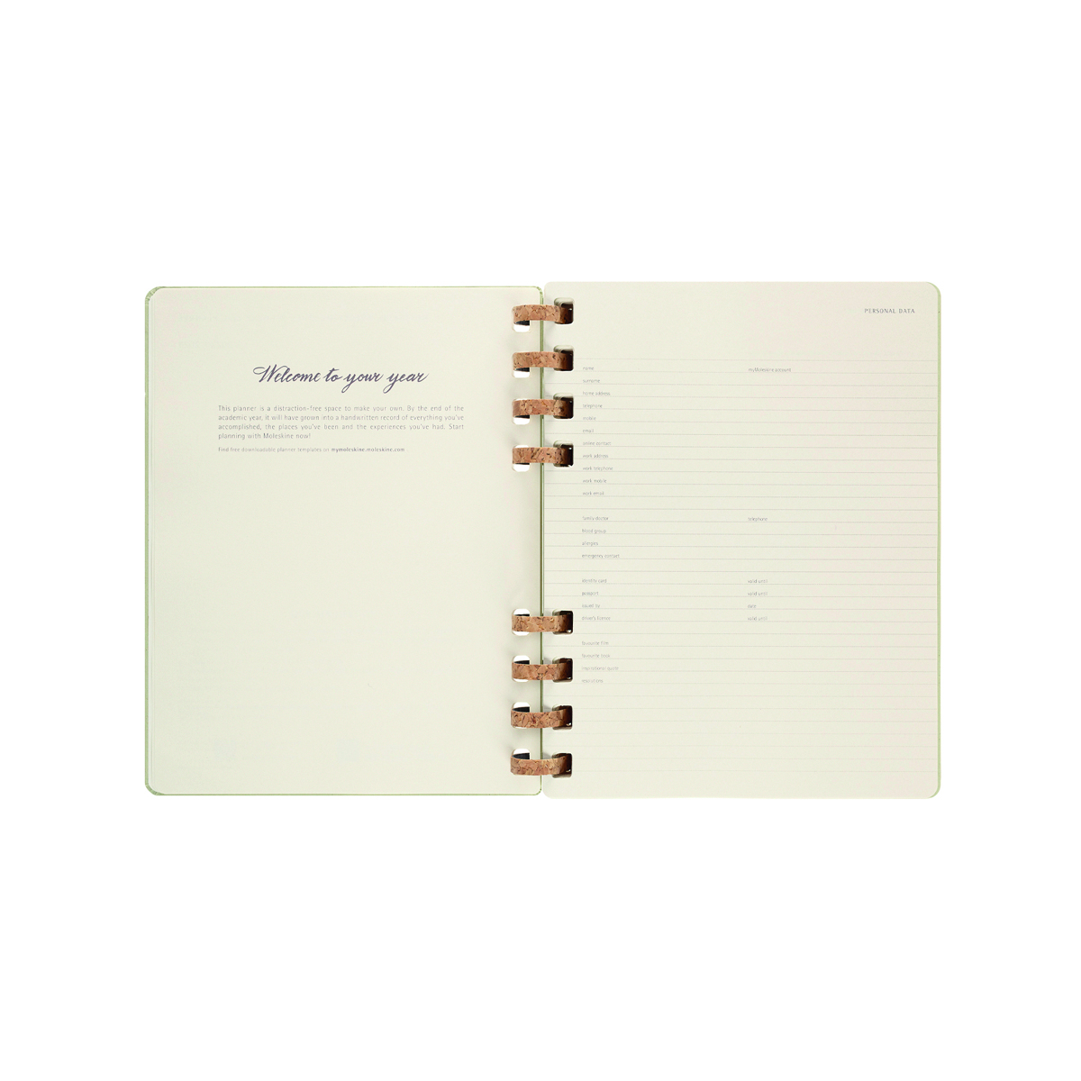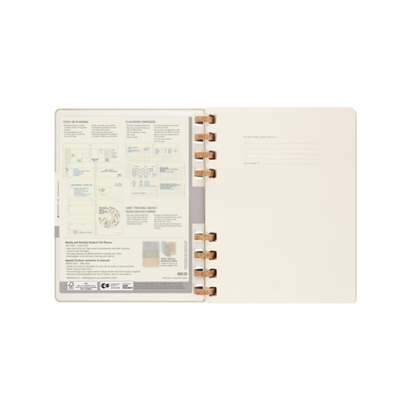 • Oprócz innowacyjnego materiału okładkowego autorstwa Favini i unikalnych treści akademickich, ten planer wyróżnia się również spiralnym grzbietem. Specjalna receptura z mieszanki korkowej zapewnia solidny, elastyczny, ciepły i oryginalny charakter kalendarza studentckiego.