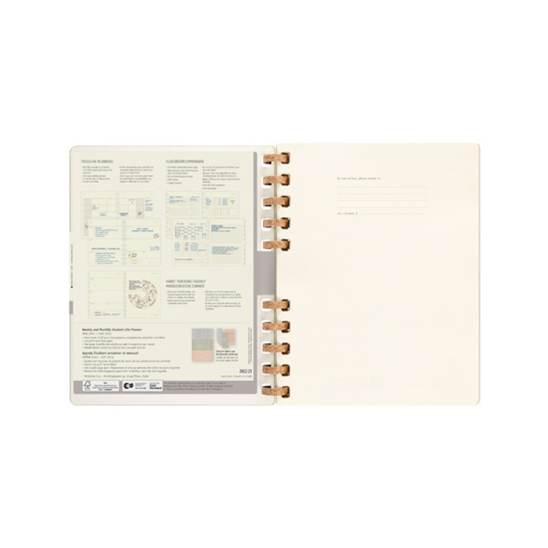 • Oprócz innowacyjnego materiału okładkowego autorstwa Favini i unikalnych treści akademickich, ten planer wyróżnia się również spiralnym grzbietem. Specjalna receptura z mieszanki korkowej zapewnia solidny, elastyczny, ciepły i oryginalny charakter kalendarza studentckiego.