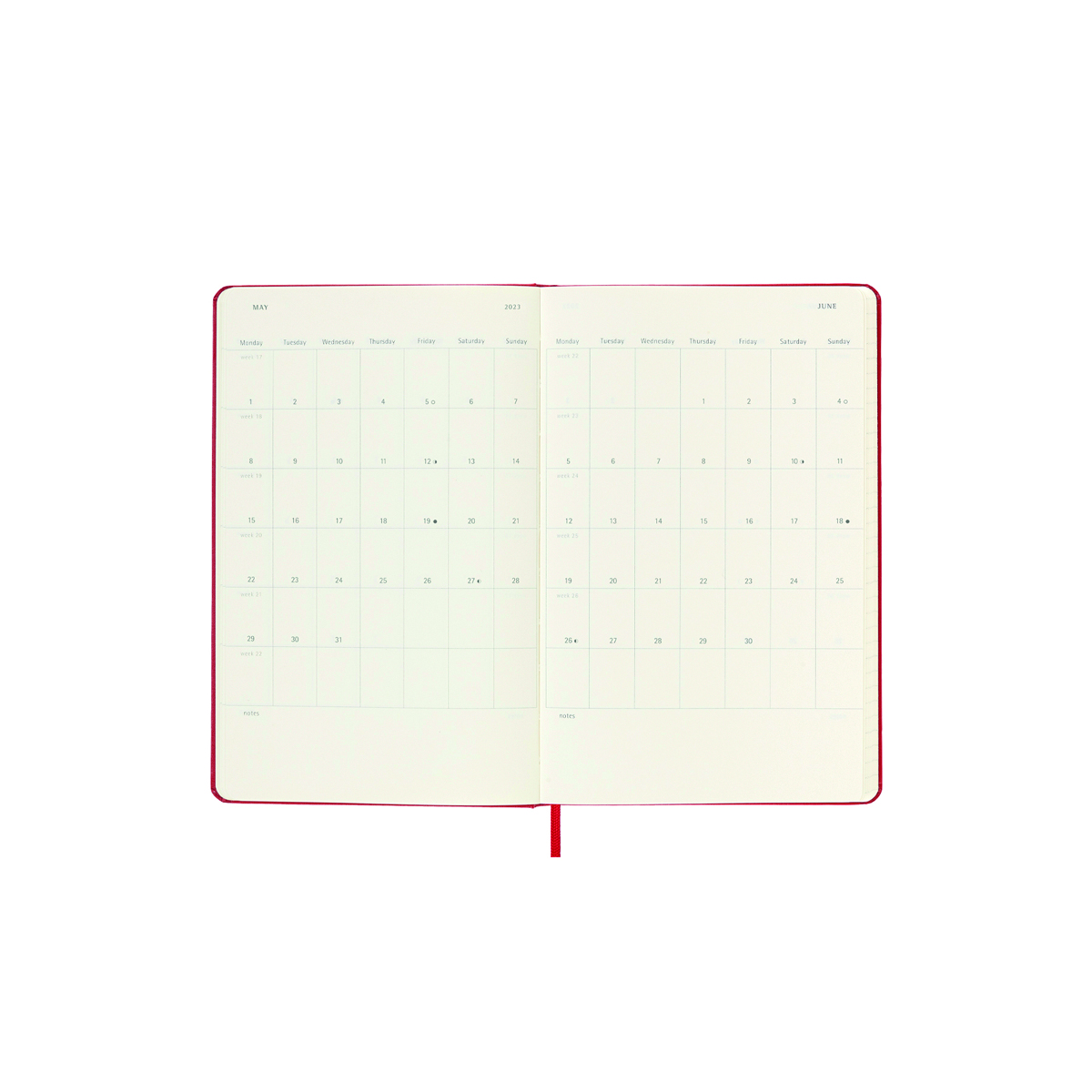 Nazwa produktuKalendarz tygodniowy MOLESKINE 2023 12M L, twarda oprawa, scarlet red