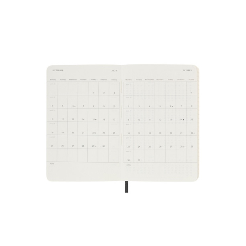 Nazwa produktuKalendarz tygodniowy horyzontalny MOLESKINE 2023 12M P, miękka oprawa, czarny