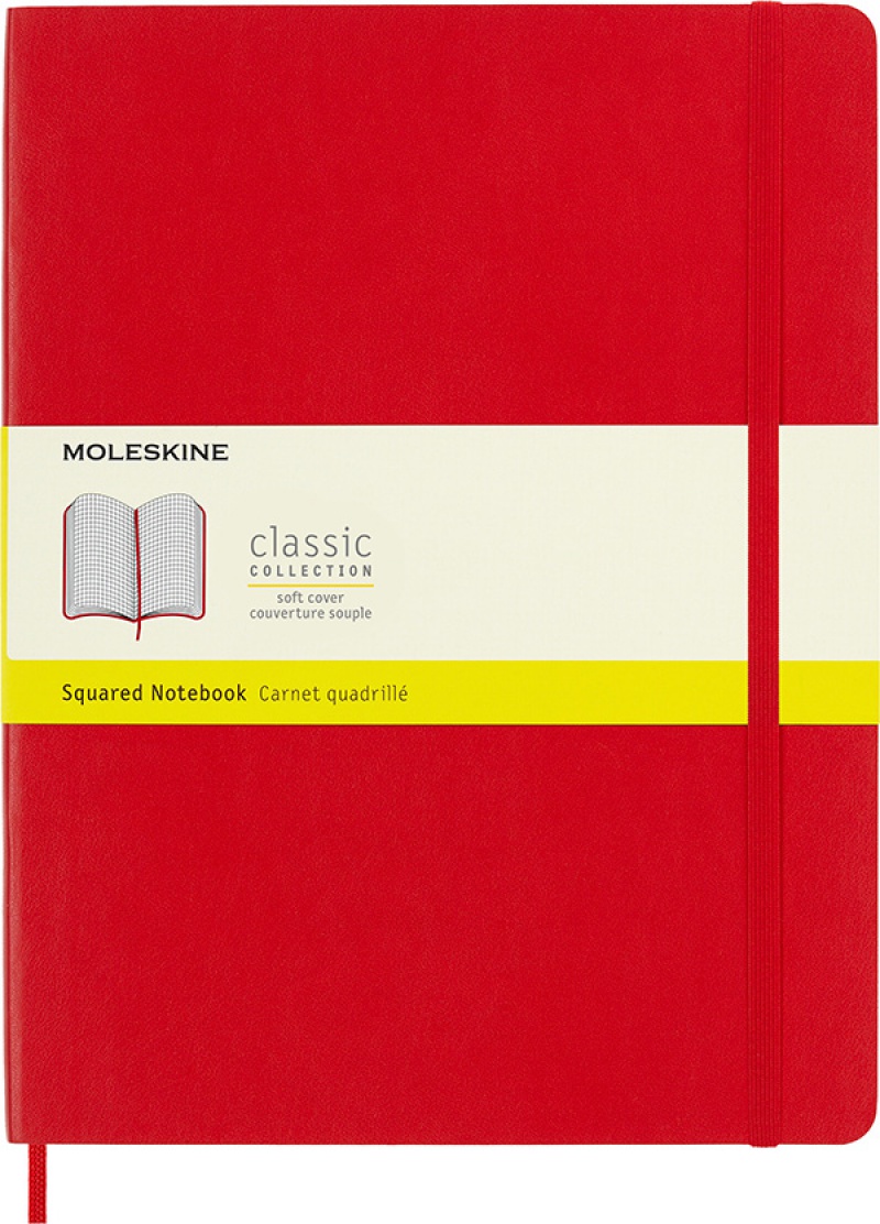 Notes MOLESKINE Classic XL, 19x25cm, w kratkę, miękka oprawa, 192 strony, czerwony, Notatniki, Zeszyty i bloki