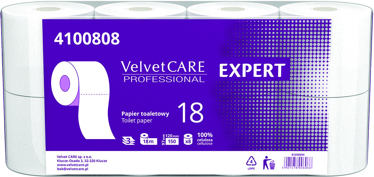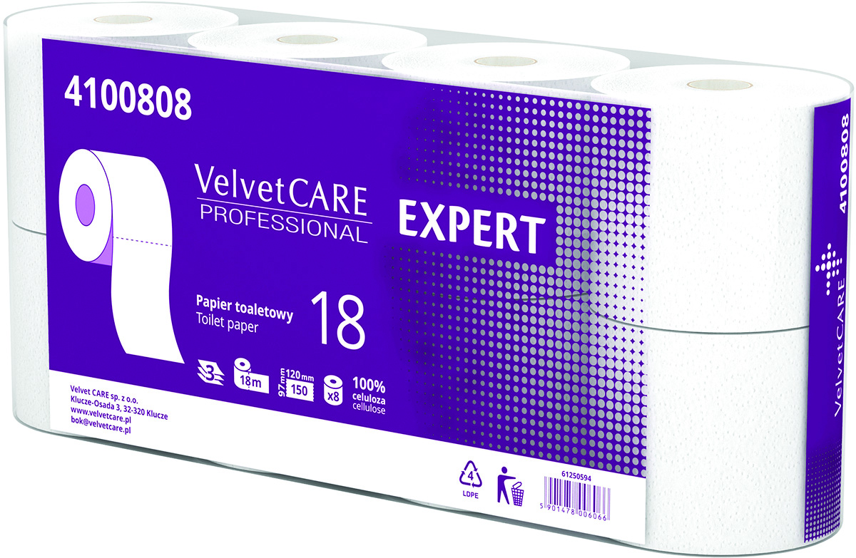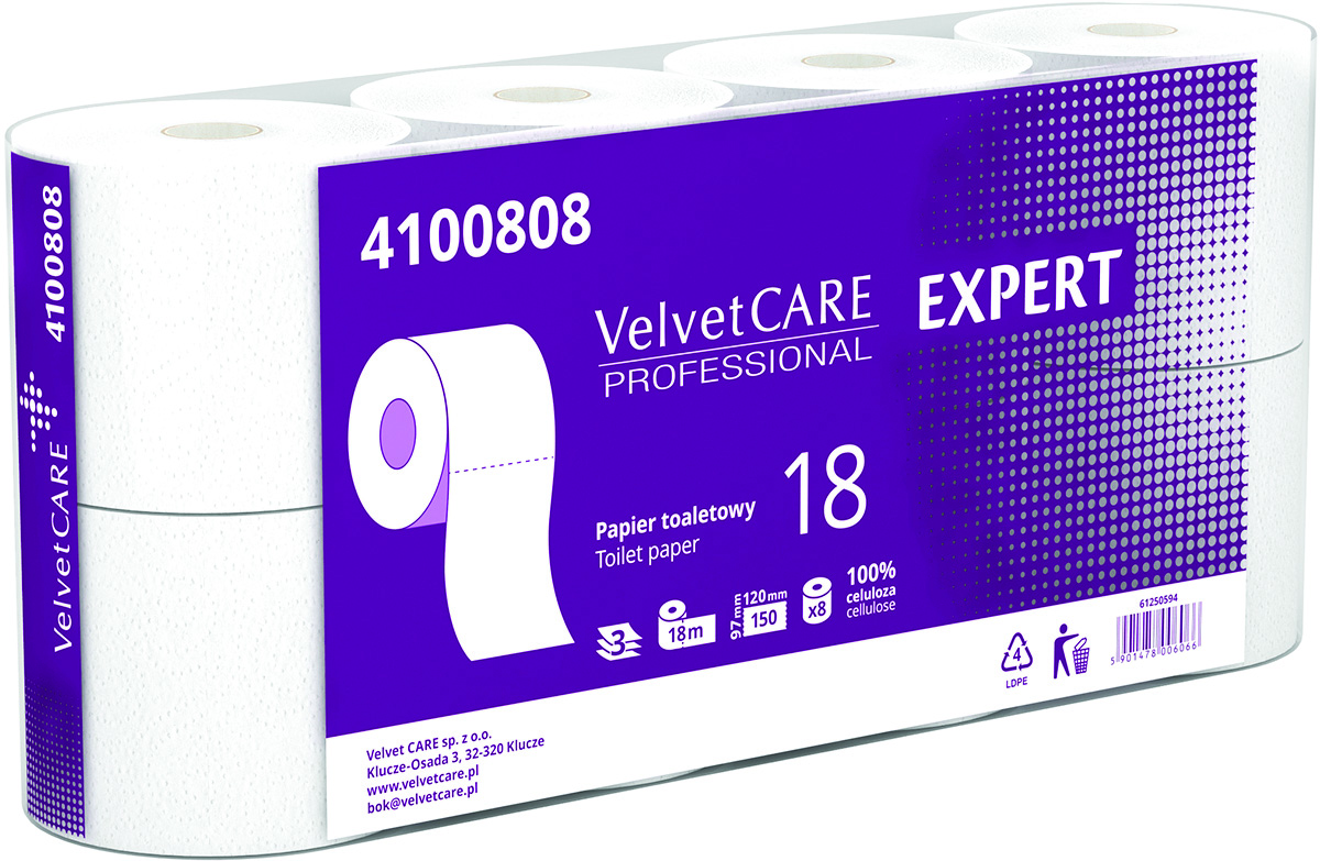 Papier Toaletowy celulozowy VELVET Expert, 3-warstwowy, 8szt., biały, Papiery toaletowe i dozowniki, Artykuły higieniczne i dozowniki